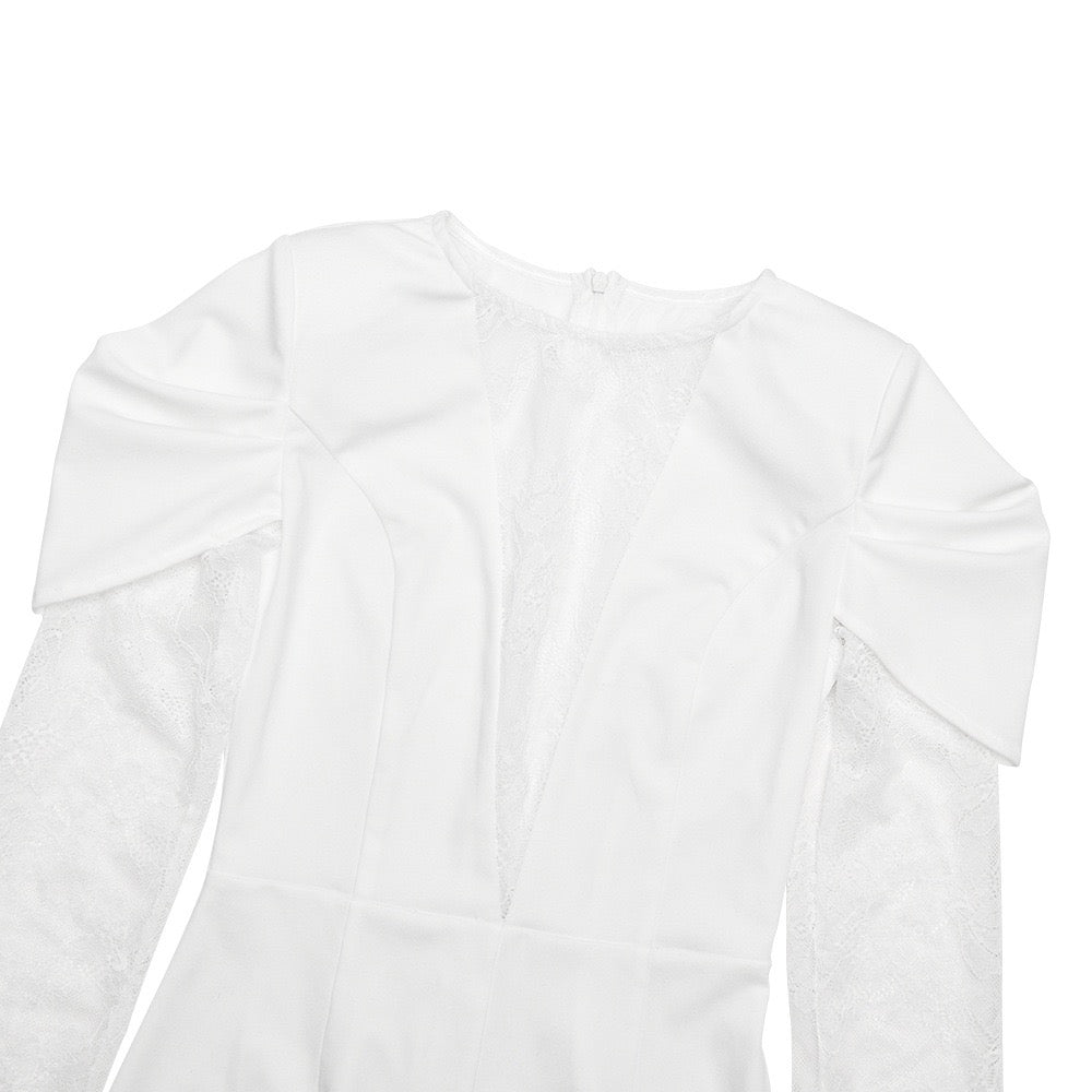 Tailored midi dress with lace and slit design - SALIN