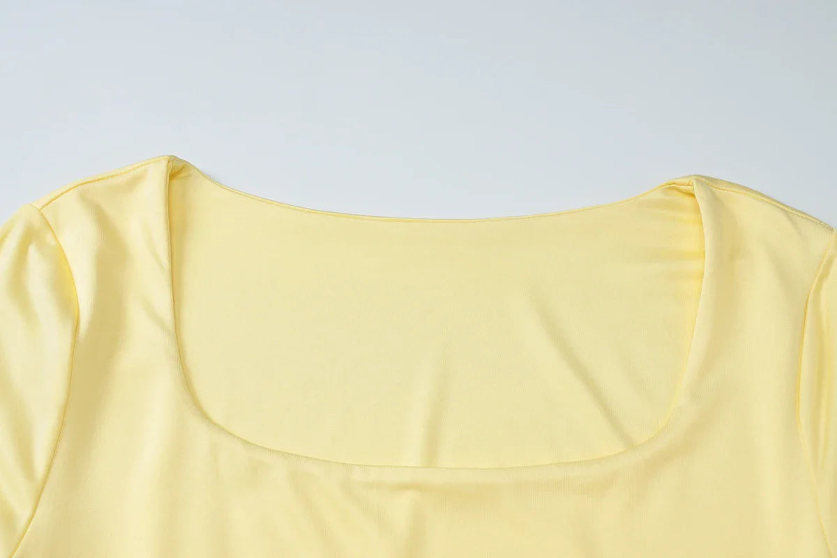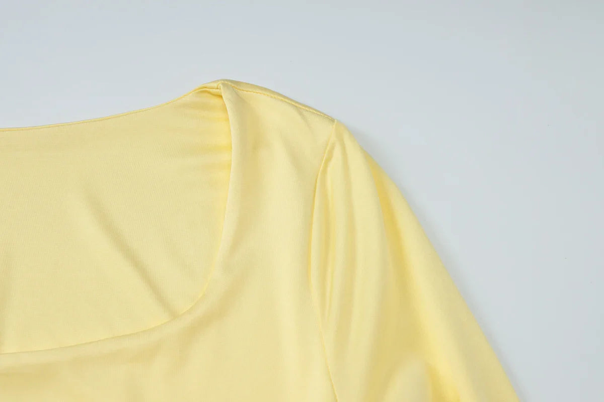 Neckline: Square collar