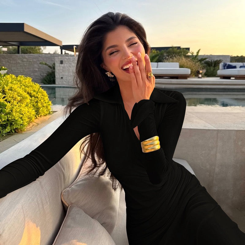 Maxi dress with ruched design and polo neck - VIOLET