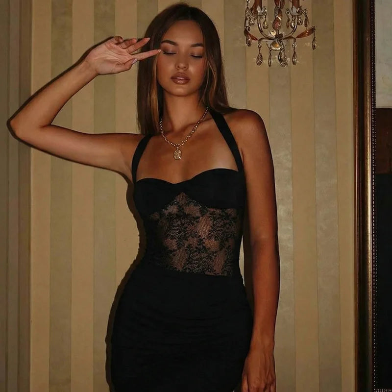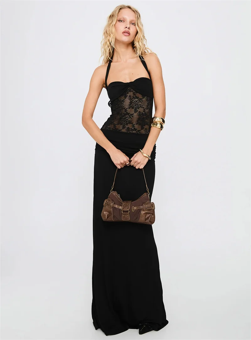 Maxi dress with lace design and open back - Nahora