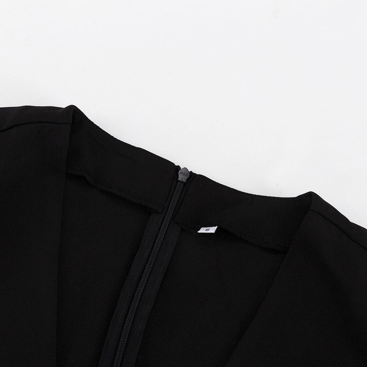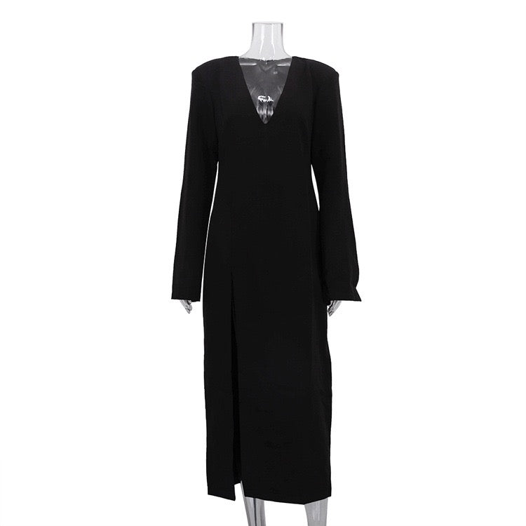 Tailored maxi dress with deep V-neckline and slit design - Amber