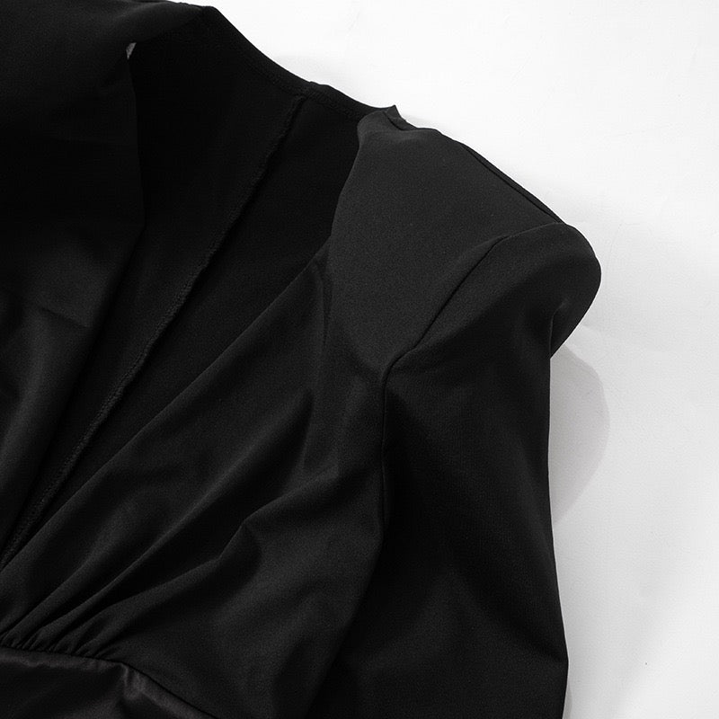 Maxi dress with satin trim in a slit design and V-neckline - TOMA