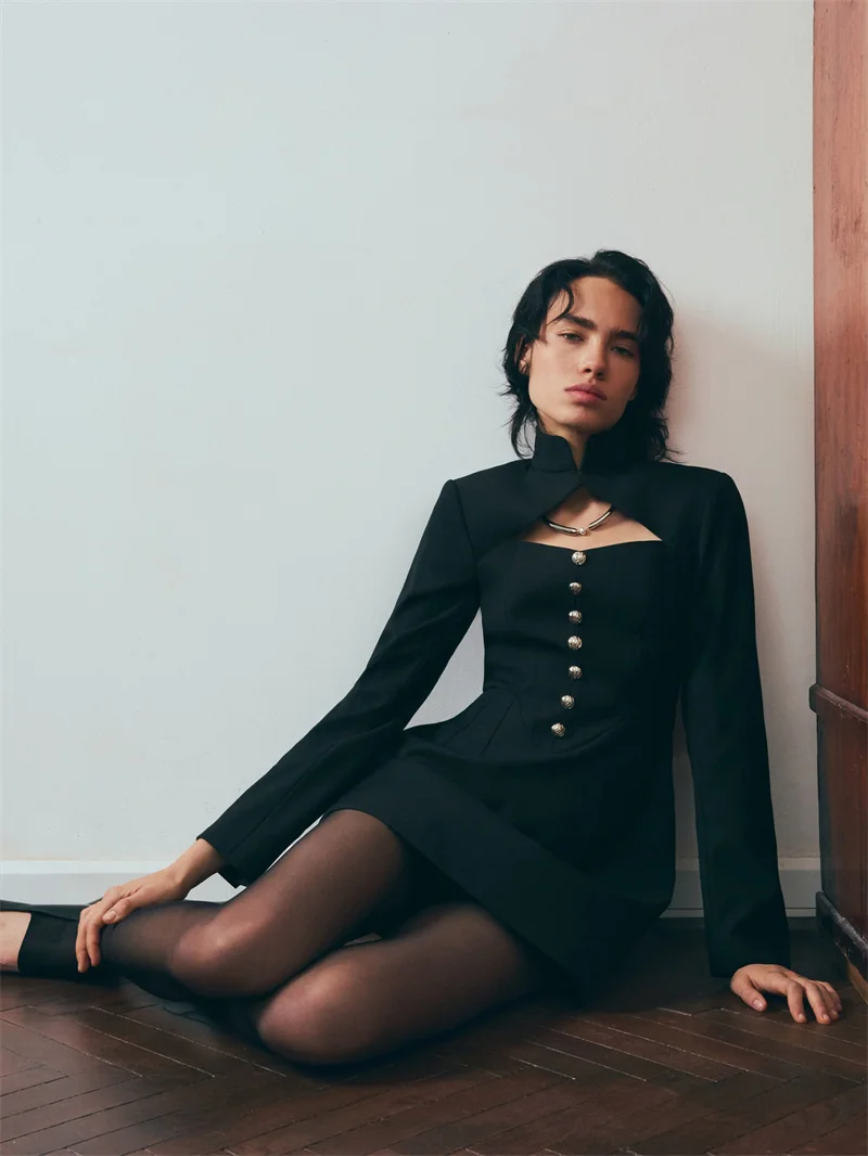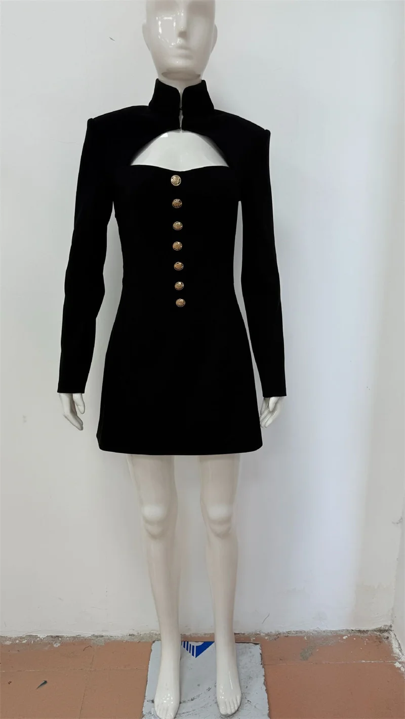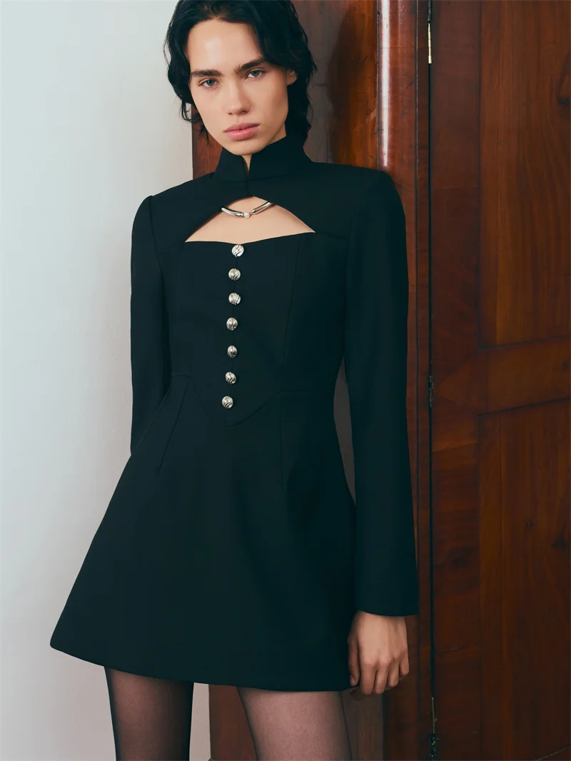 Neckline: High collar