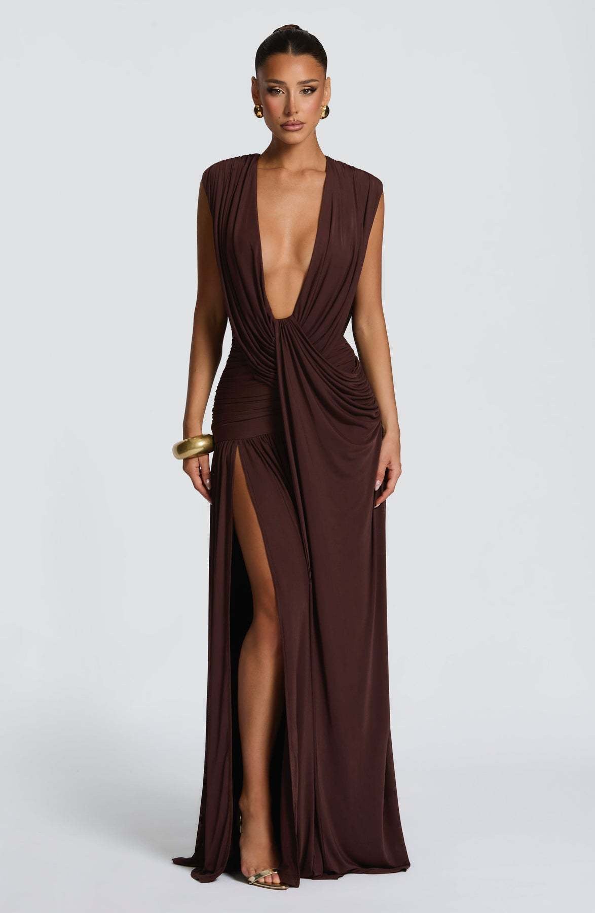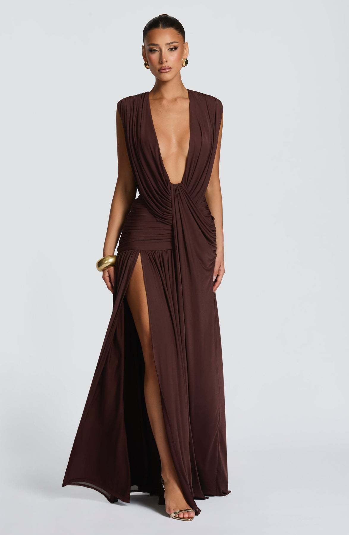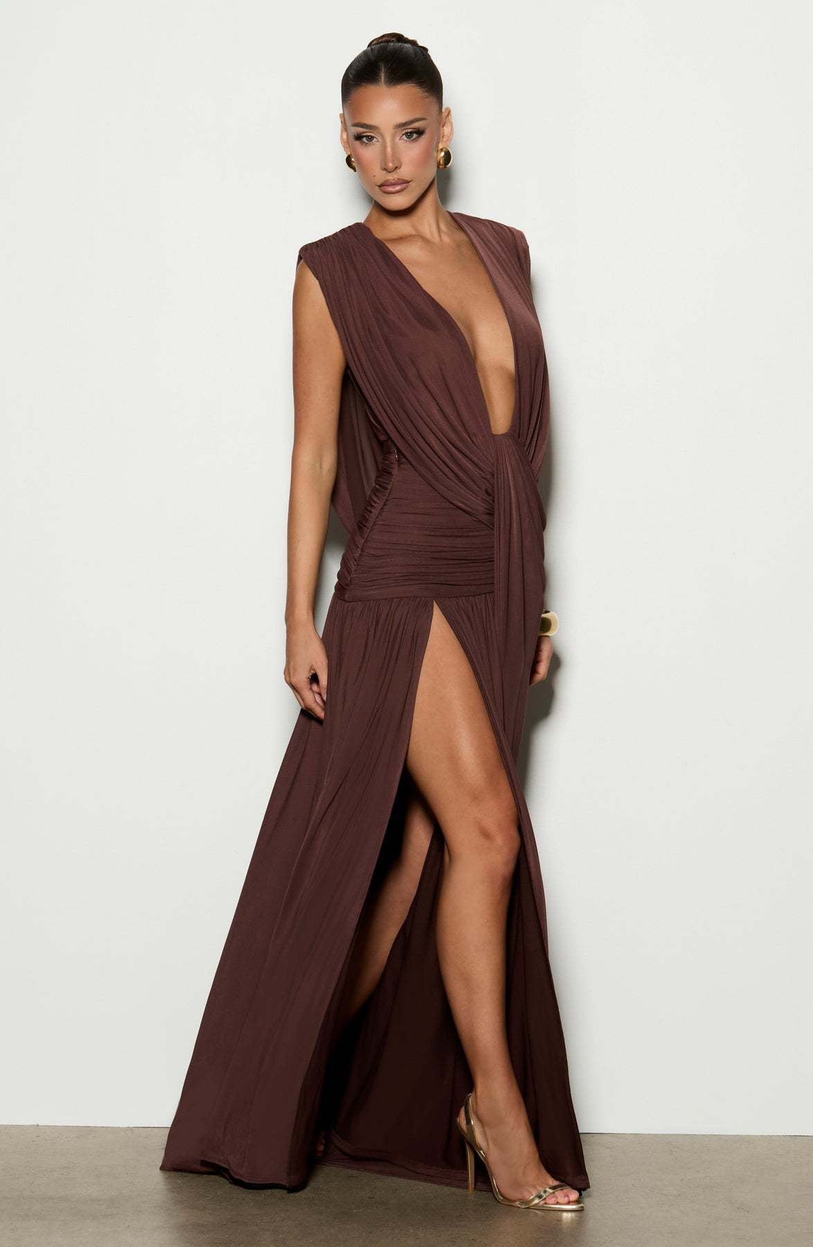 שמלת מקסי קיפולים בעיצוב גב פתוח ושסע - pnney