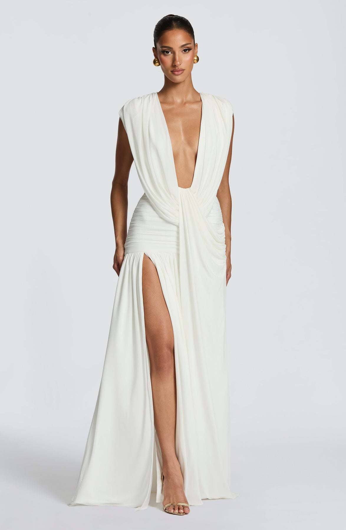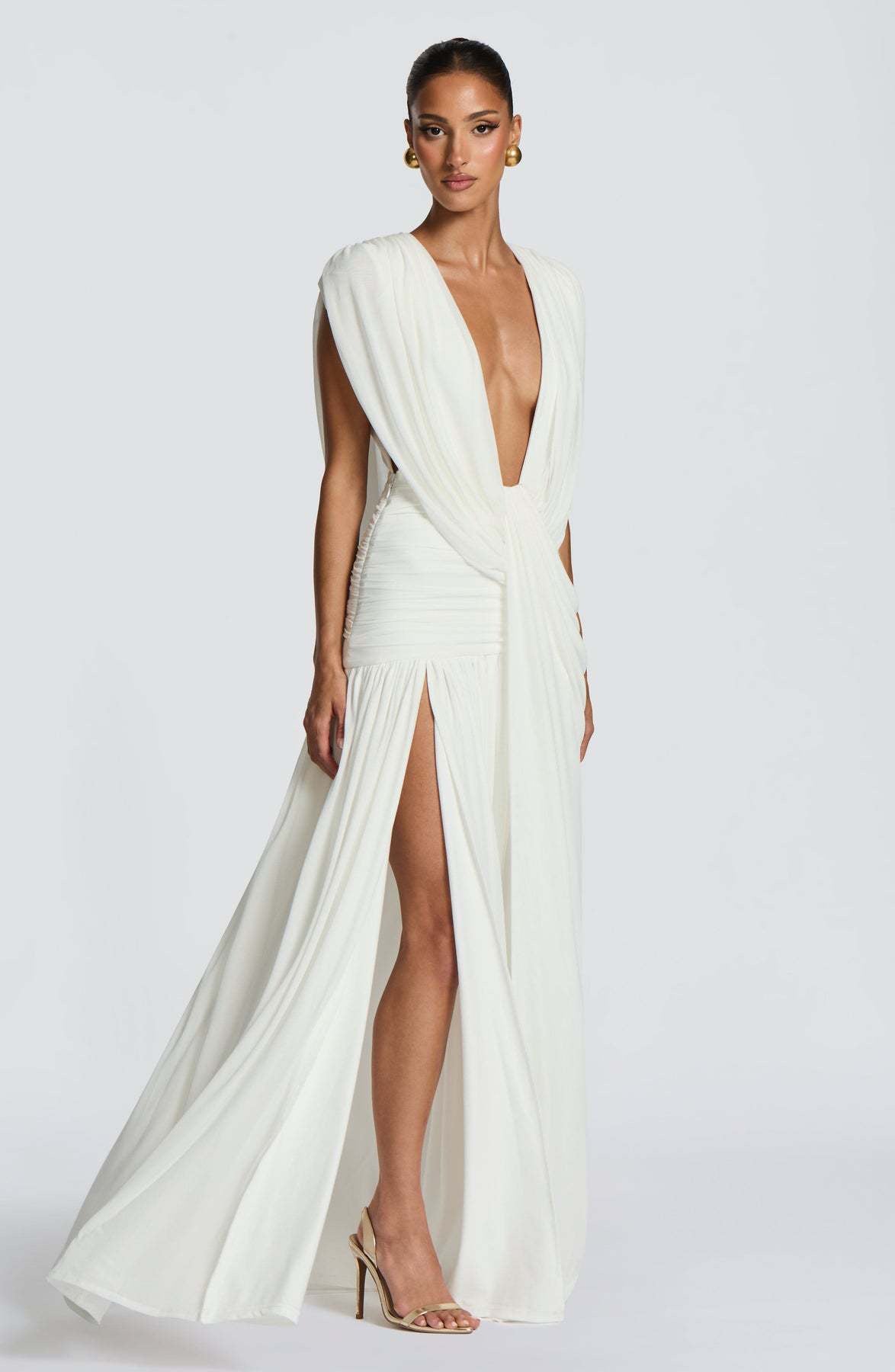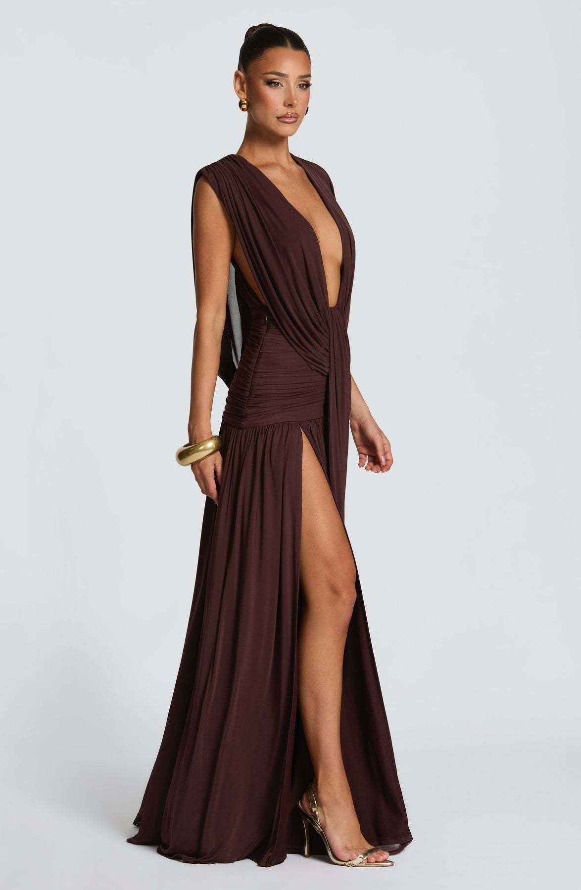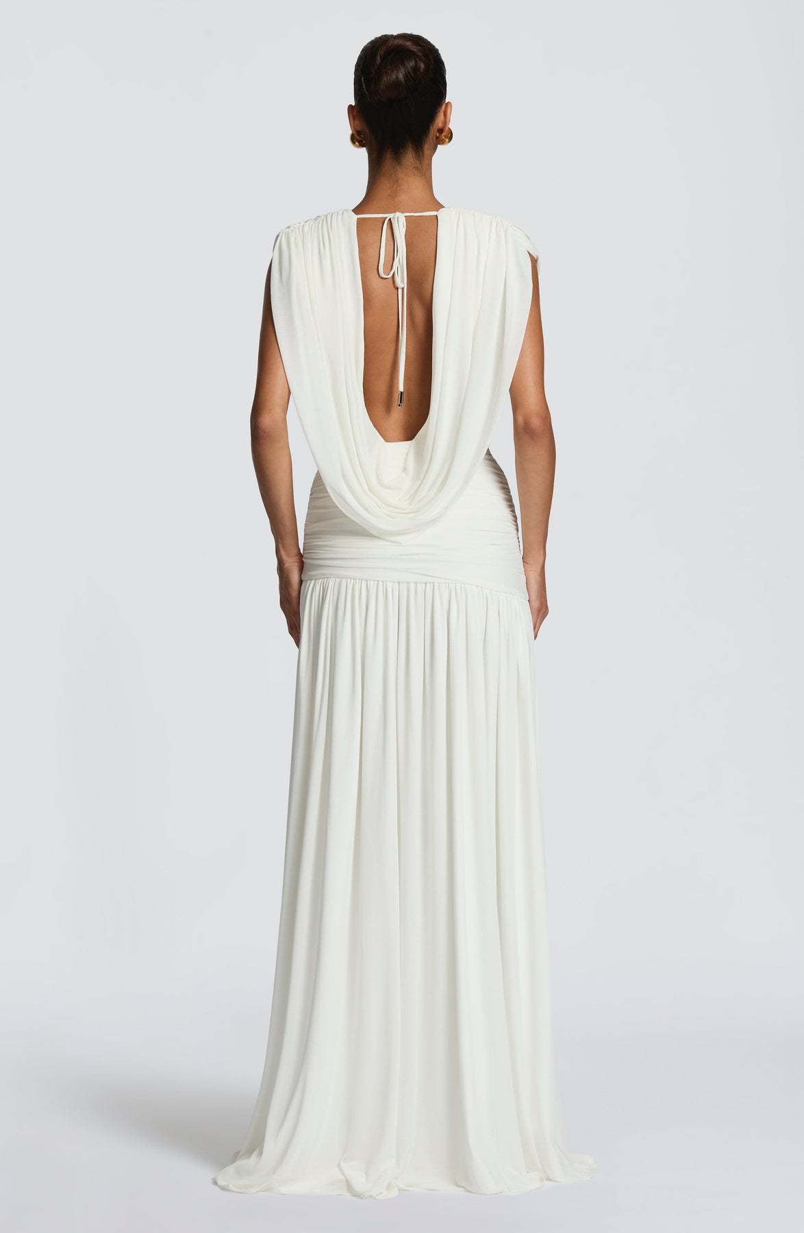 שמלת מקסי קיפולים בעיצוב גב פתוח ושסע - pnney